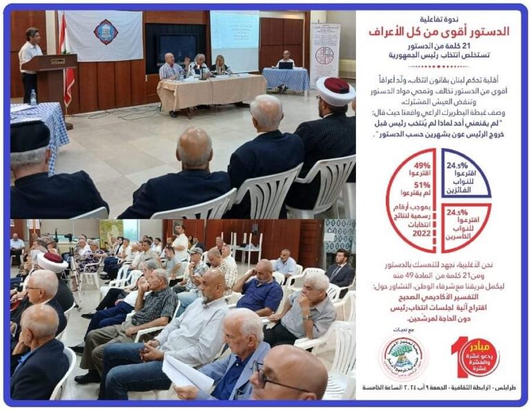 ٢١ كلمة من الدستور تستخلص انتخاب رئيس جمهورية في الرابطة الثقافية